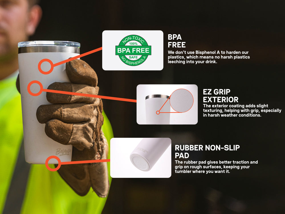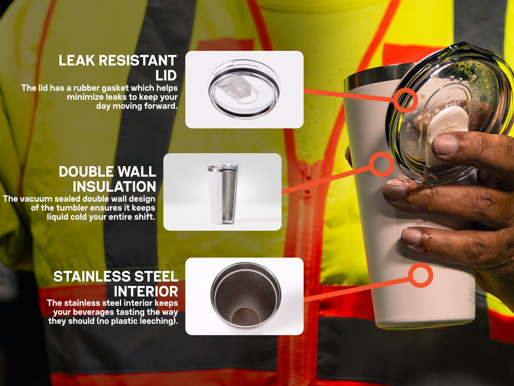 Tough, reliable, and ready for the long haul. This 20 oz tumbler is double-wall insulated to keep drinks hot or cold for hours—on the job, in the truck, or wherever the day takes you. Made from rust-resistant stainless steel with a non-slip base and secure lid, it won’t tip, leak, or slow you down. Lightweight, easy to grip, and built to last. Want your logo on it? We customize it too—because gear should work for you, not the other way around.