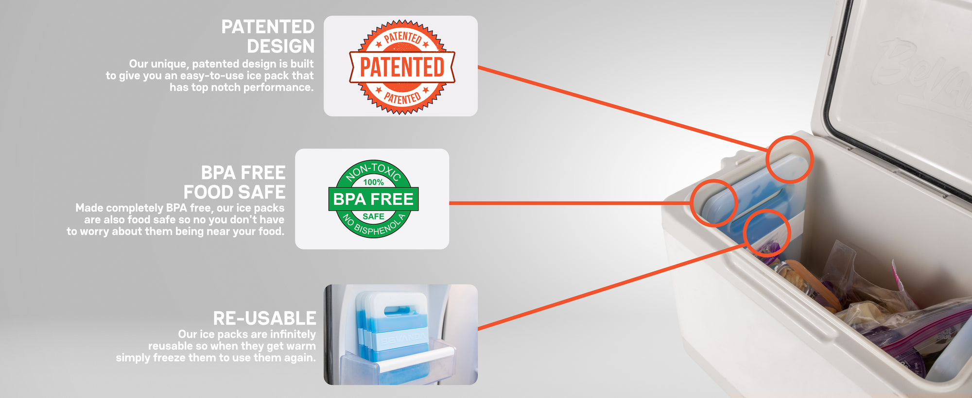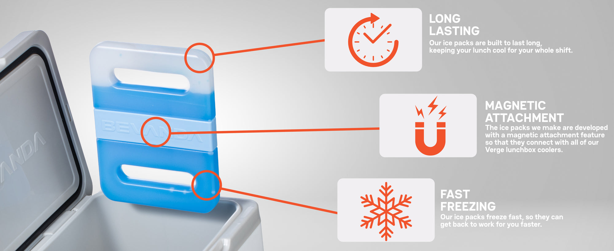 These magnetic ice packs snap right onto the inside walls of your Verge 10 QT Cooler to keep your food fresh and drinks cold all day long. Just freeze, attach, and you’re good to go—no loose ice or wasted space.